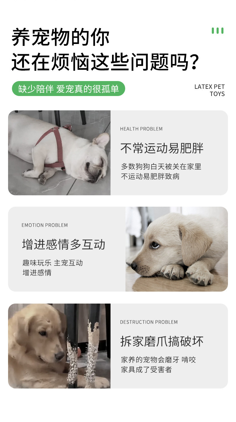 这款玩具采用优质*胶材料制作,质地柔软而富有弹性。*胶具有非常好的耐磨性和弹性,不易变形,经得起狗狗长时间的咬嚼与玩耍。*胶材质不仅安全环保,还不会对狗狗的口腔和牙齿造成伤害,能够有效减少玩具对宠物健康的潜在威胁。