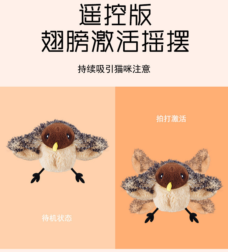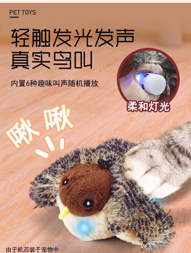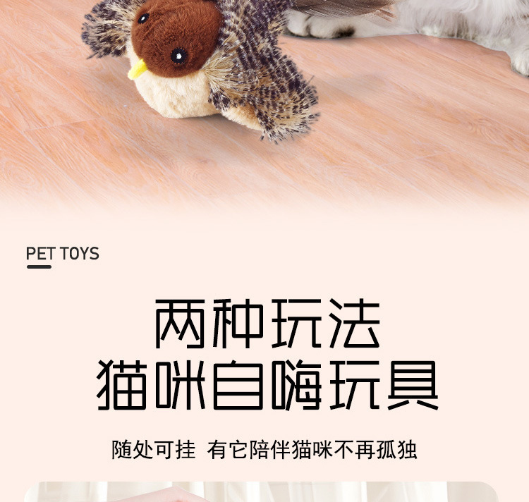 猫咪玩具触动感应发声逗猫棒毛绒*小鸟宠物用品磨牙自嗨解闷,是一款非常适合猫咪的互动玩具。它不仅能有效地吸引猫咪的注意力,还能帮助猫咪解闷、磨牙,满足猫咪的天性需求,是宠物商店的理想产品。