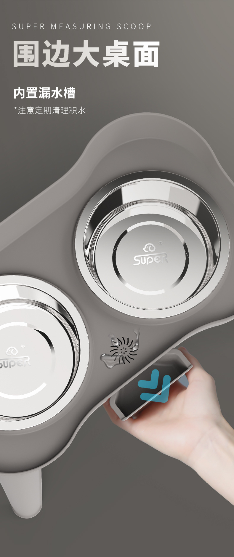 防滑设计: 碗底配有防滑橡胶圈,确保碗在地面上稳固放置,不易滑动,防止宠物在进食时碗被推倒,减少打翻食物和水的麻烦。