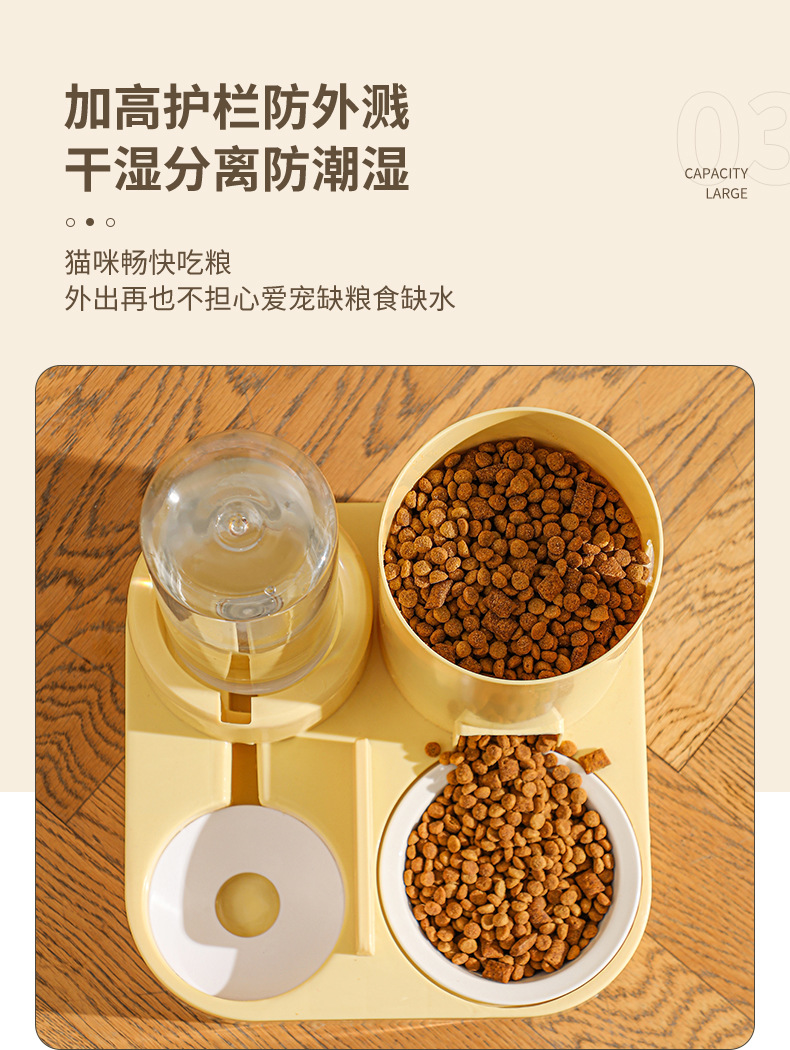 随着宠物行业的不断发展,宠物用品市场需求日益增长,尤其是智能化、便捷化的产品深受宠物主人青睐。我们为您推荐一款全新的 自动猫咪喂食喂水器狗碗猫盆三合一饮水机,集喂食、喂水、饮水等功能于一体,满足宠物日常饮食需求,让宠物生活更健康、更舒适。