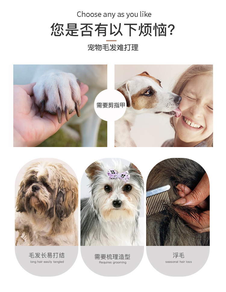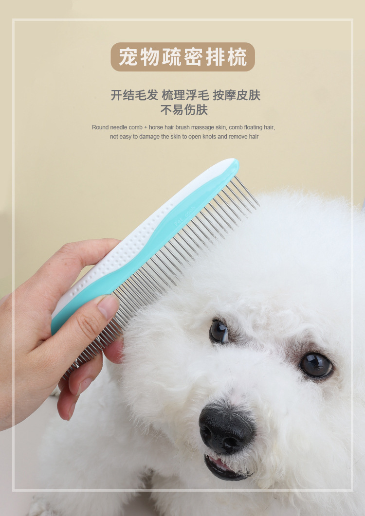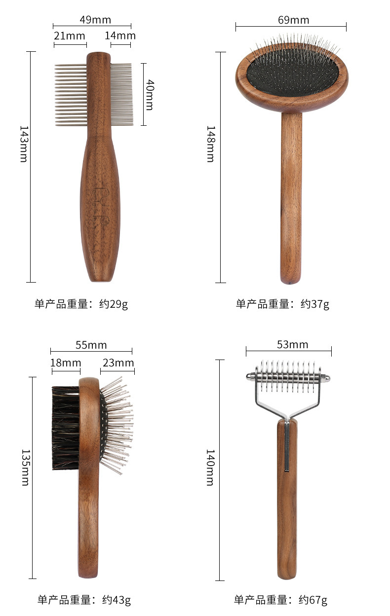 多功能性:套装内的多款梳子适合各种毛发类型的宠物,满足不同梳理需求,功能多样,全面照顾宠物的毛发健康。